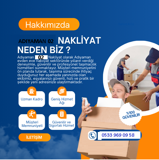 Adıyaman evden eve nakliyat hizmetimiz ile eşyalarınız güvenli ellerde. Profesyonel ekip ve ekipmanlarla taşınma sürecinizi kolaylaştırıyoruz.